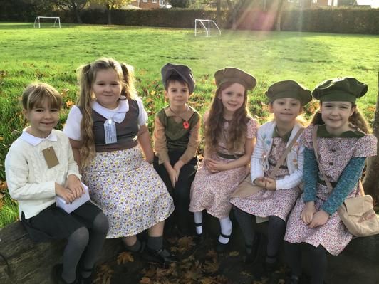 The children have dressed as evacuees today to mark Remembrance Day. Every child has made a red poppy and these have been displayed in our school.