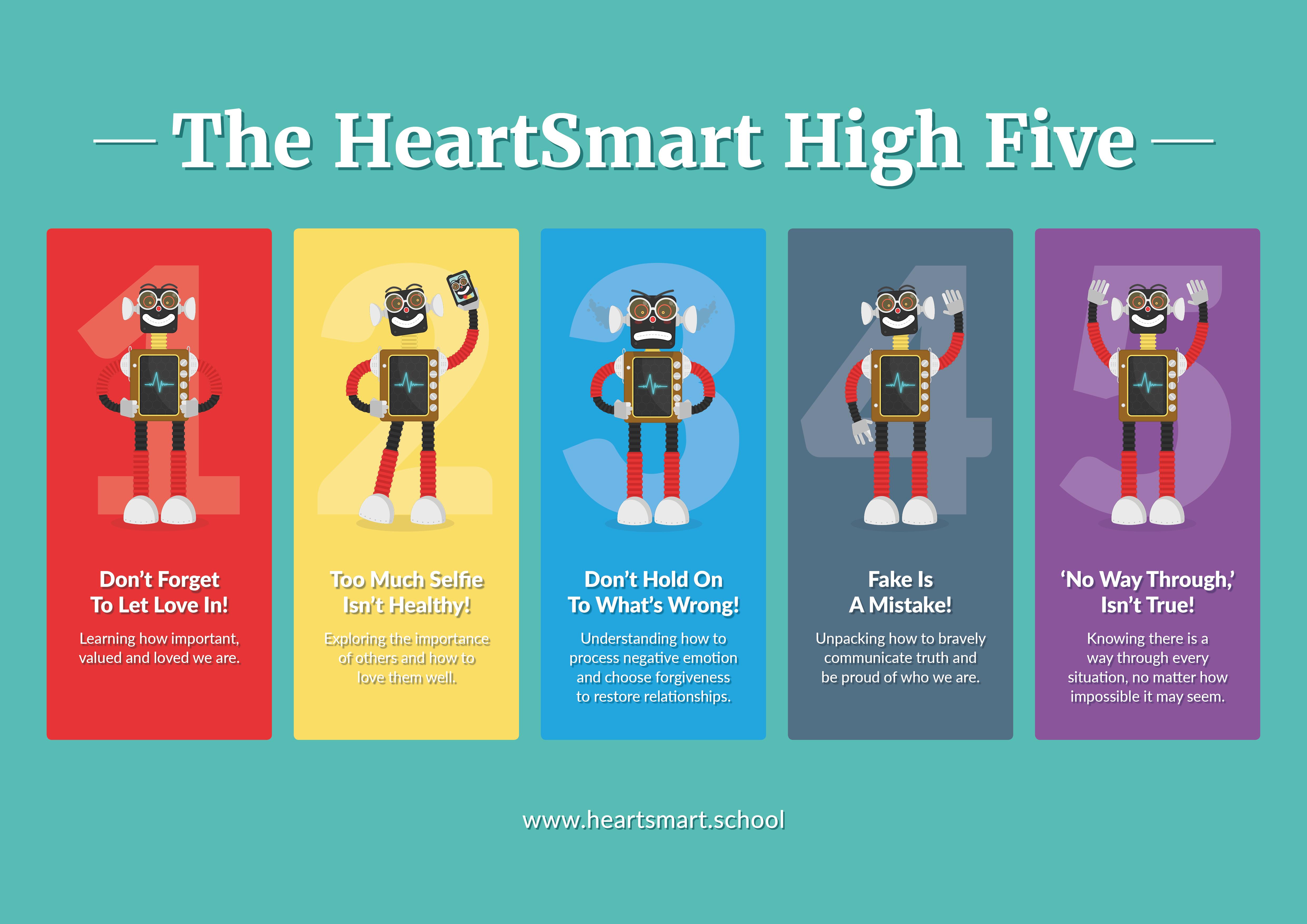 Our High 5 Heartsmart principles are displayed around the school and in every classroom and referred to regularly.