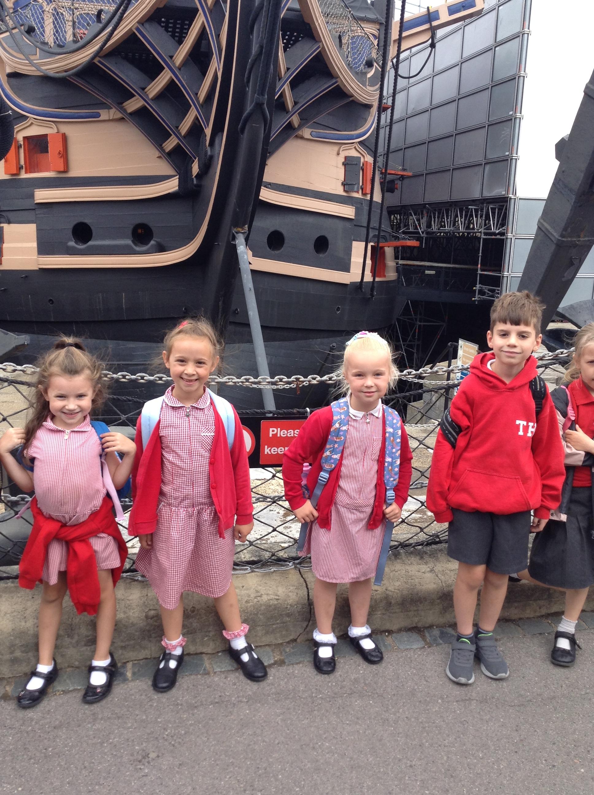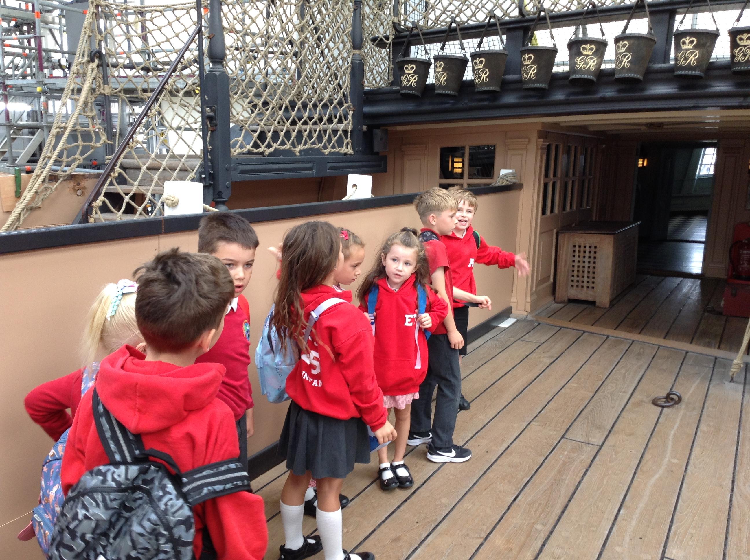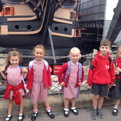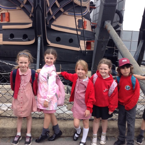 On Tuesday we went on a whole school trip to HMS Victory. We explored the ship and the museums. It was a great day! On Wednesday we enjoyed a performance about change from Prazin’ Hands and thought about our new schools. On Thursday we created and took part in fundraising activities for our school charities. We also found some butterflies on the school field!