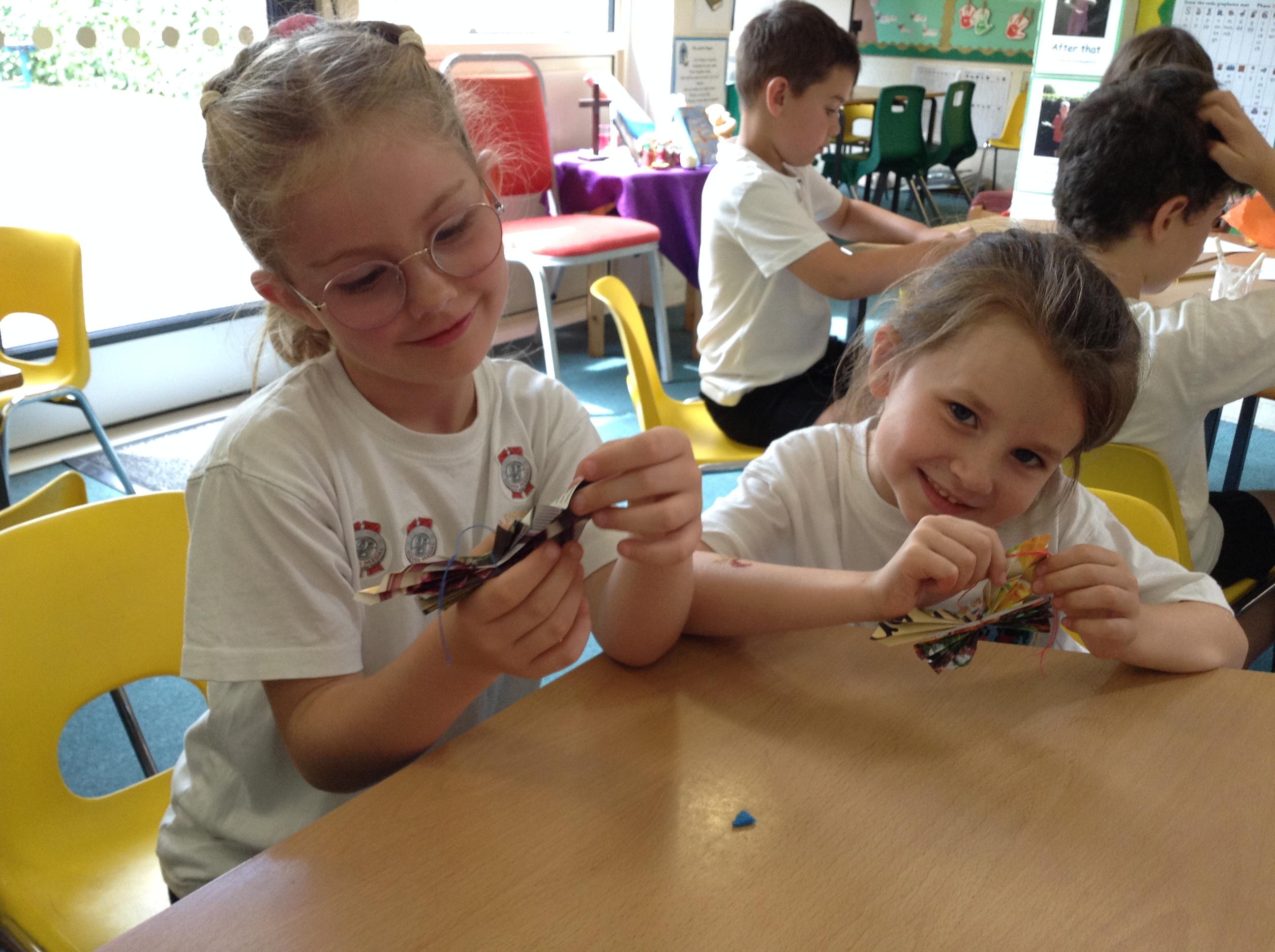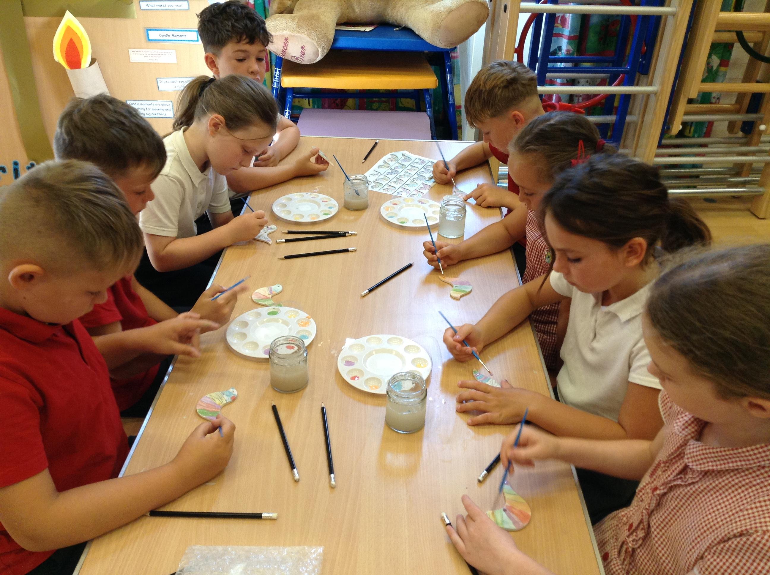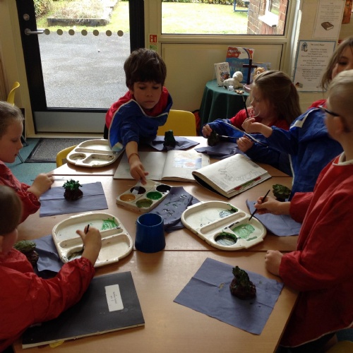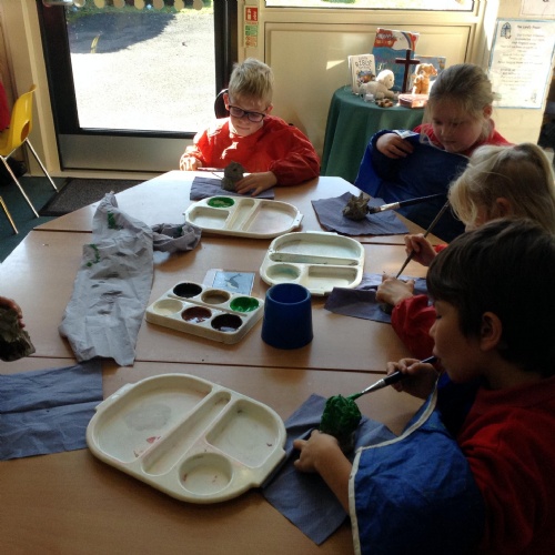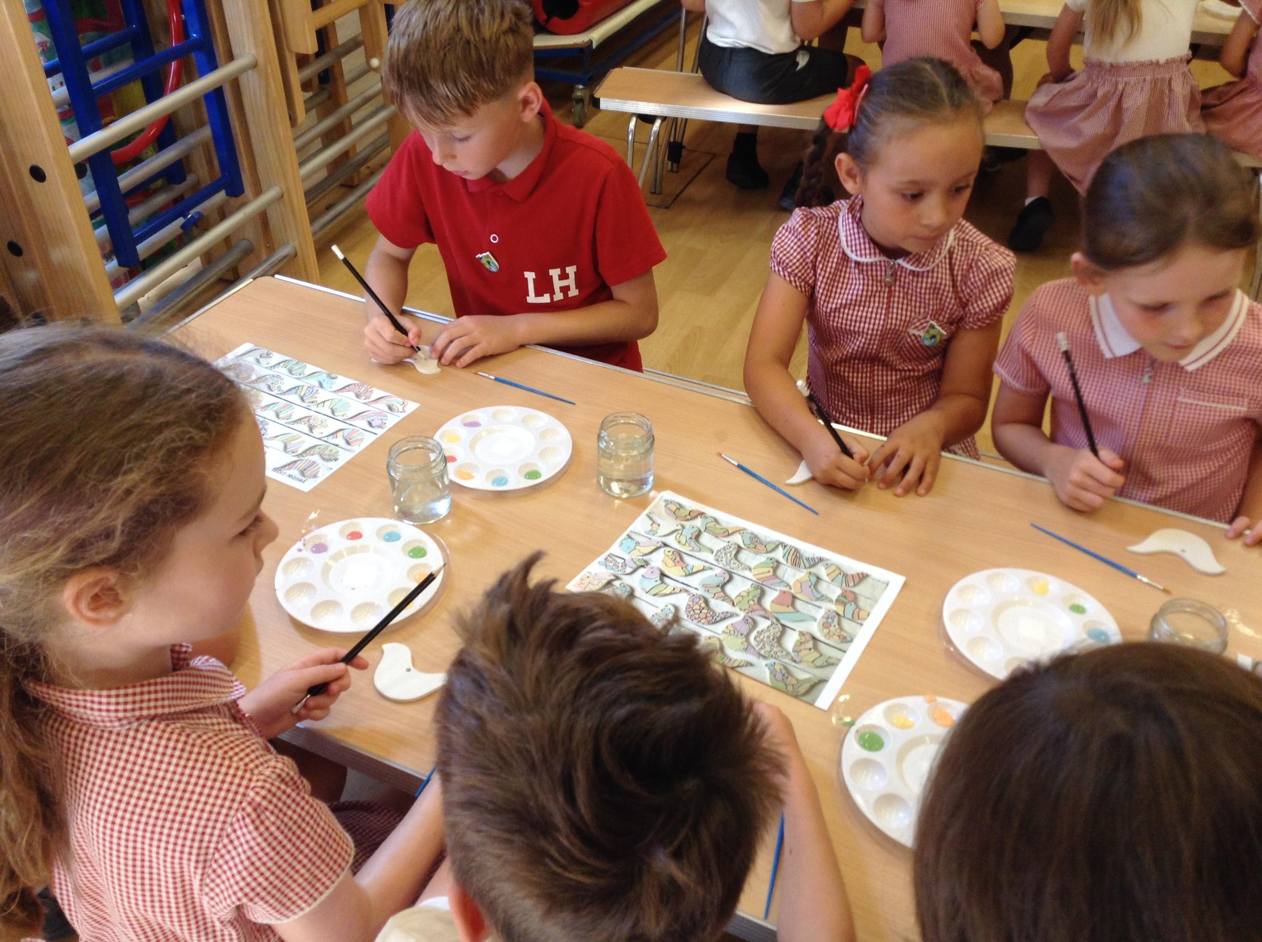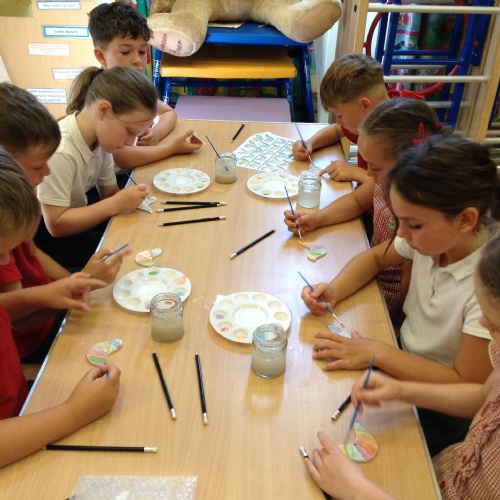 This week we began learning about protection in RE and acted out some scenarios. We made some scones for the Cream Tea event to say thank you to our volunteers this year. On Wednesday, a local artist came to school and helped us paint some doves. We explored our Bug Hotel as part of our Science learning.