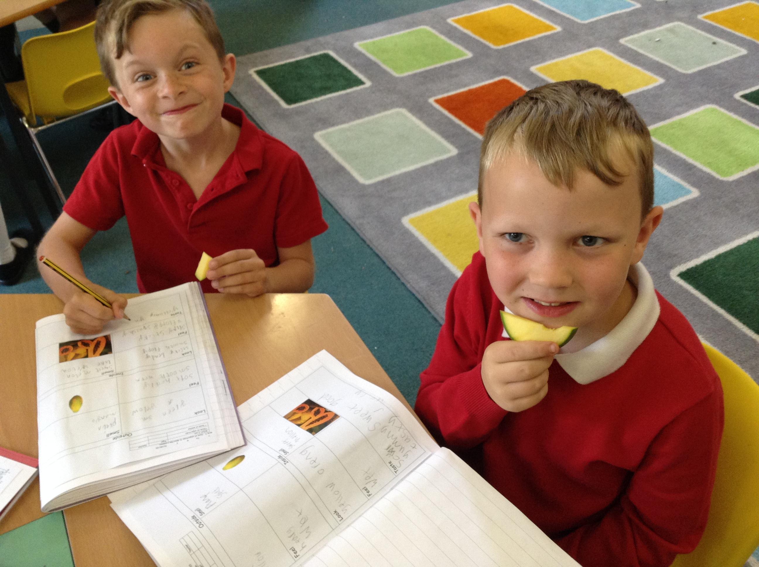 This week we had fun in our music lesson learning about samba. We enjoyed playing the instruments too! We explored the story ‘The Papaya That Spoke’ and thought about, tasted and wrote about a papaya. In science we investigated where the most worms are, in the class garden, or the Wild Area. We found 1 worm in the class garden, but 15 in the Wild Area!