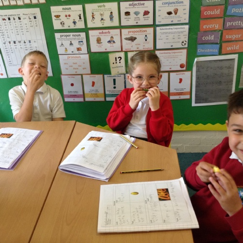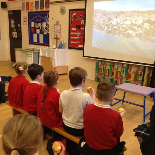 This week we held out annual Harvest Service. The School Councillors took donations to the local Foodbank. We solved addition problems in maths and continued to explore the story ‘Jonah and the Big Fish’ in RE. The PTFA organised a sponsored bounce on Friday which was lots of fun.