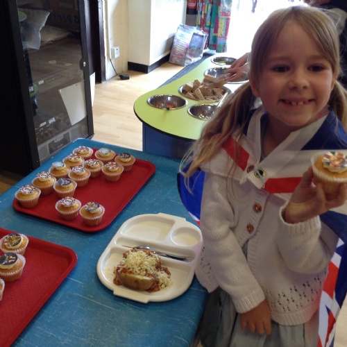 We celebrated VE Day on Thursday by wearing red, white and blue. We played some traditional games and had a street party on the playground at lunchtime.