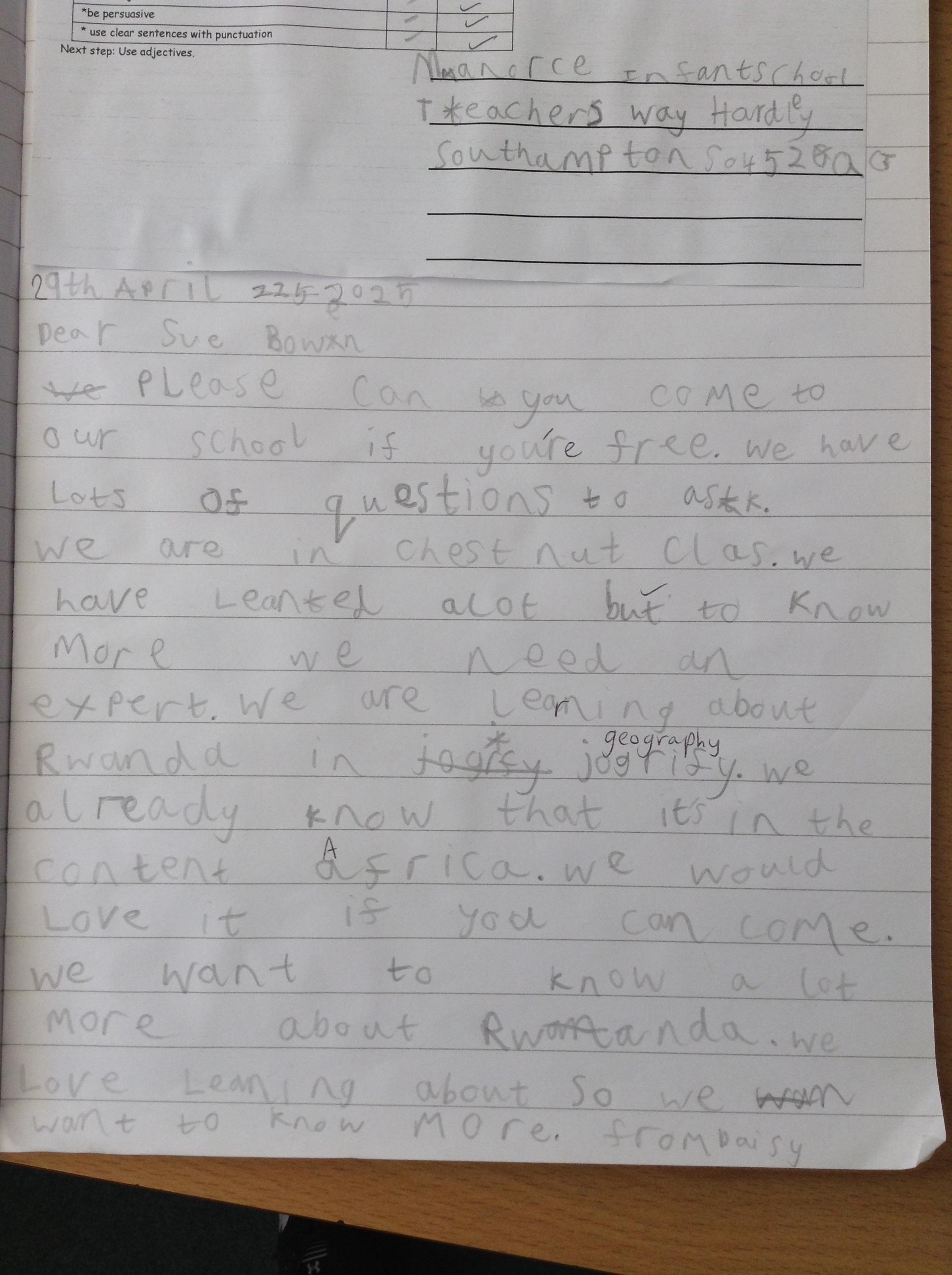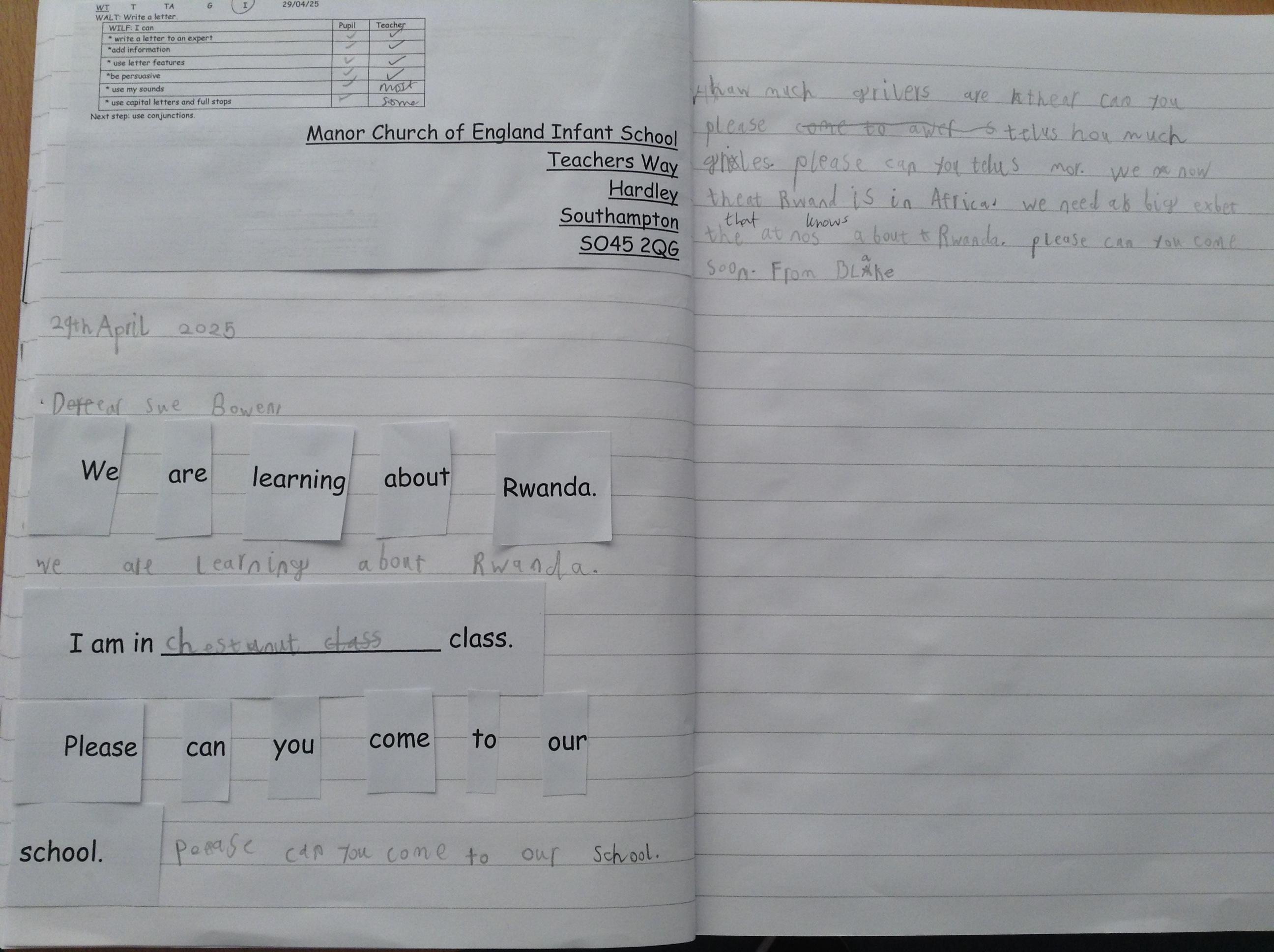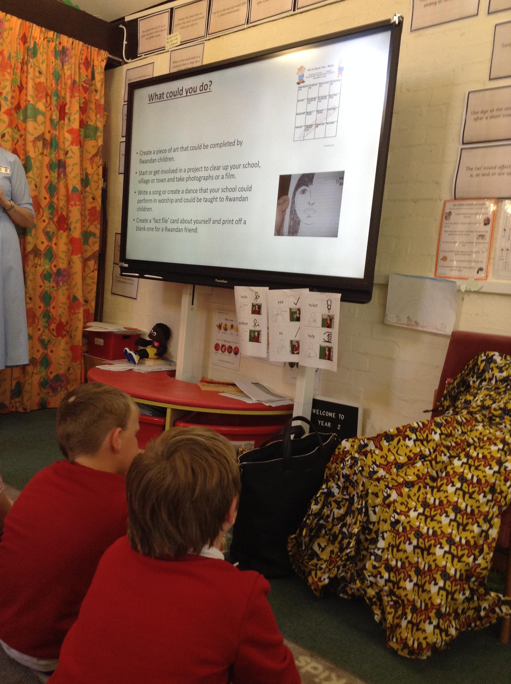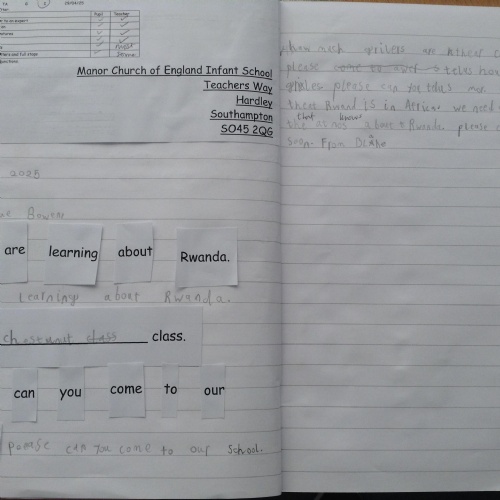 We wrote letters to Mrs Bowen to invite her to school to share her knowledge of Rwanda with us. On Wednesday, we had a visit from Mrs Bowen and we learnt lots more about Rwanda and asked some of our questions. We had a look at some Rwandan objects too. In Computing, we explored the programme 2Go on the laptops and learnt about algorithms.