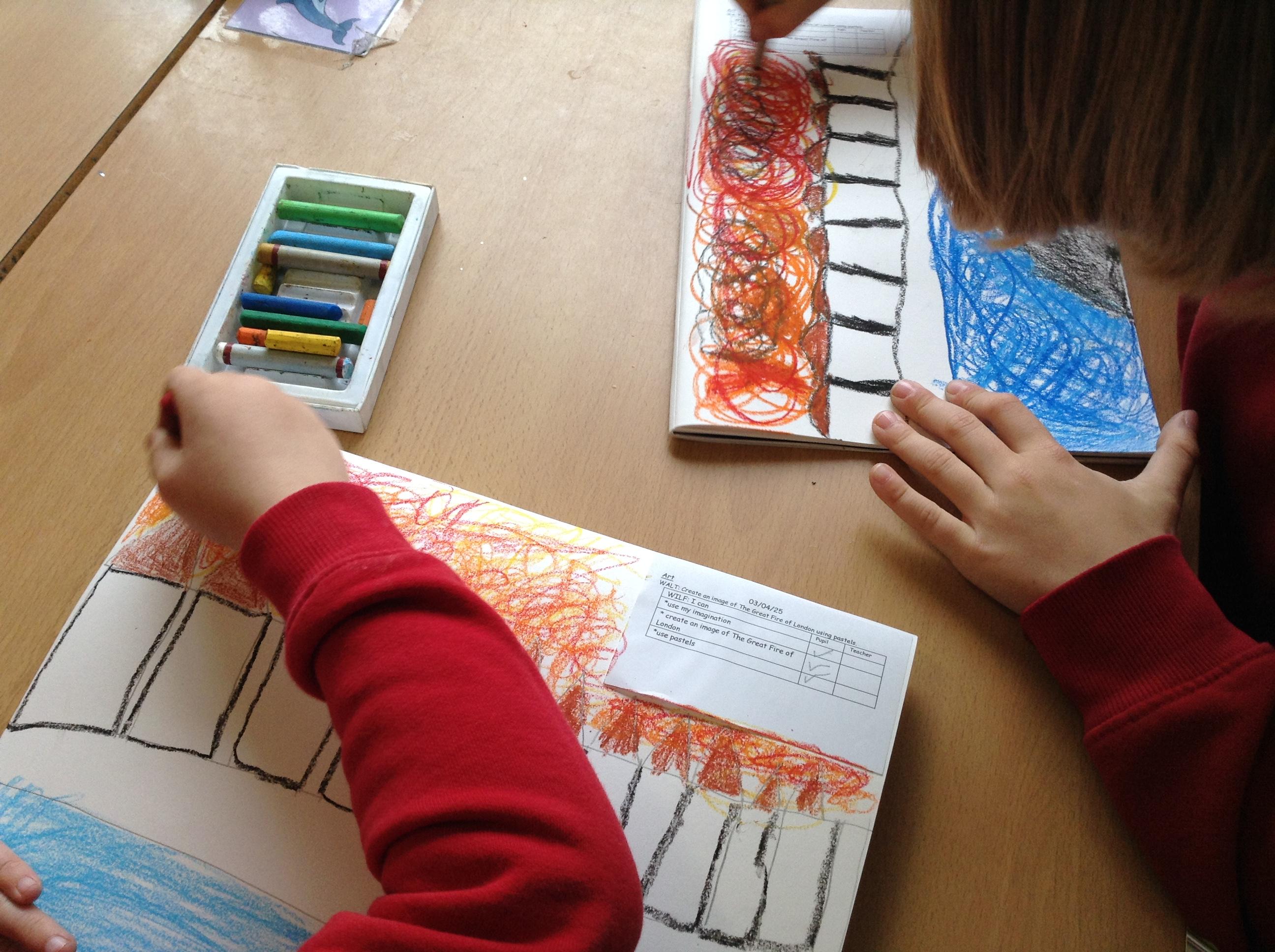 In RE this week we learnt about Easter and welcoming in the Easter story. In Art we used pastels to create a picture of the Great Fire of London.