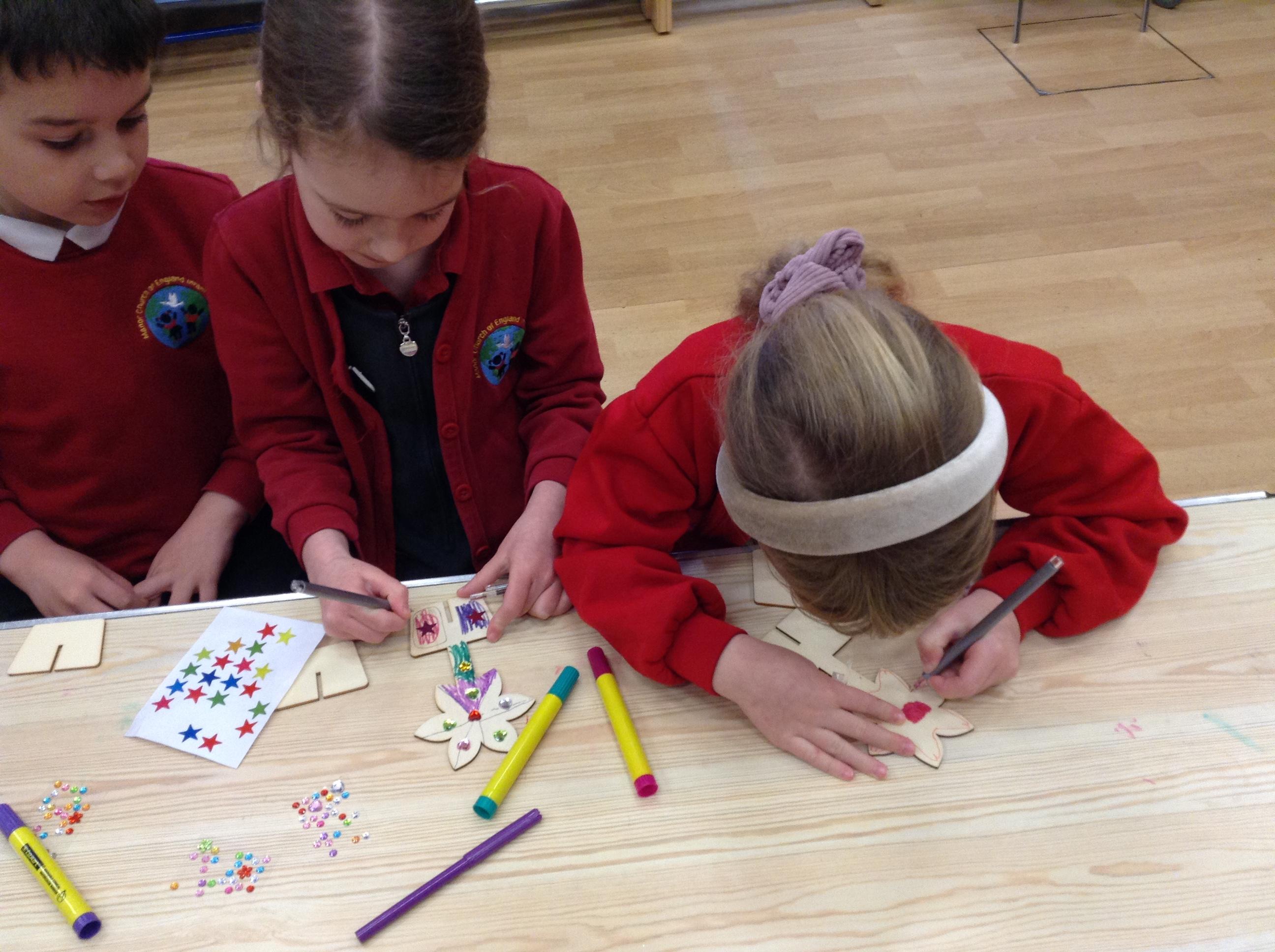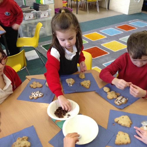 This week we designed and made our own biscuits. We also took part in the Christingle Service at All Saints Church in Fawley and had our school Christmas dinner afterwards. We have been weaving using the looms by following our plans in Art.