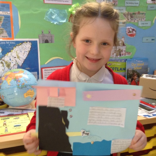 This week we read some Katie Morag stories as part of our new topic ‘Katie Morag’. In Geography we learnt about the Isle of Coll and identified human and physical features. In Art, we created a rainbow using collage techniques.
