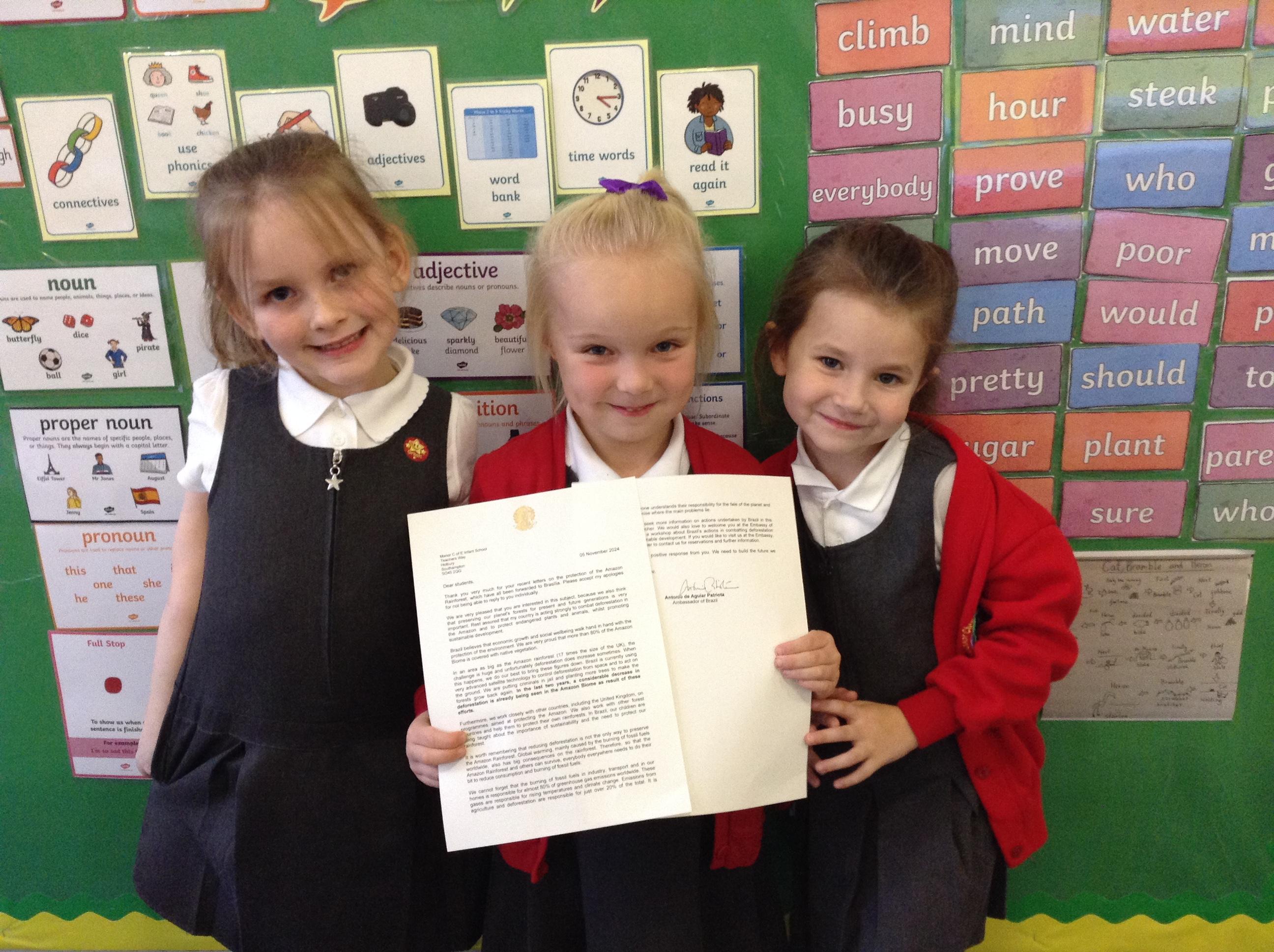 This week we also received a letter from the Brazilian Embassy in response to our letters about the Amazon Rainforest.