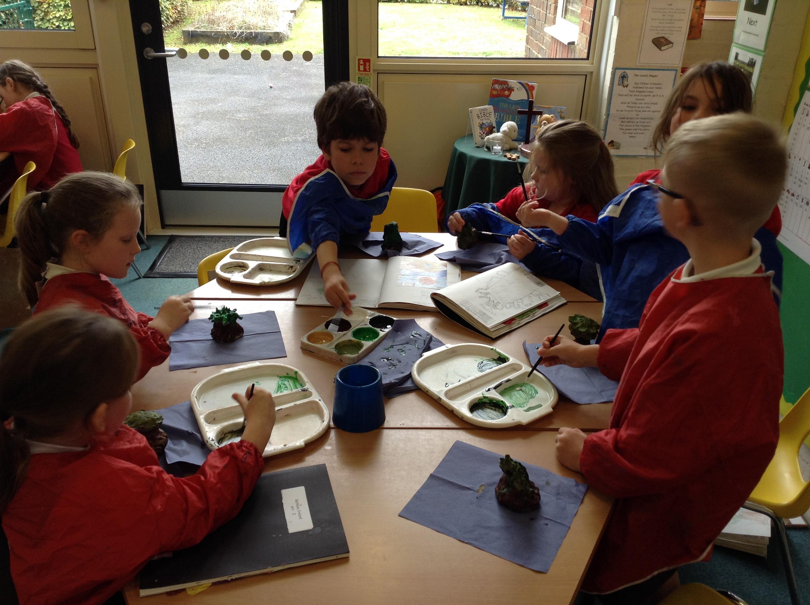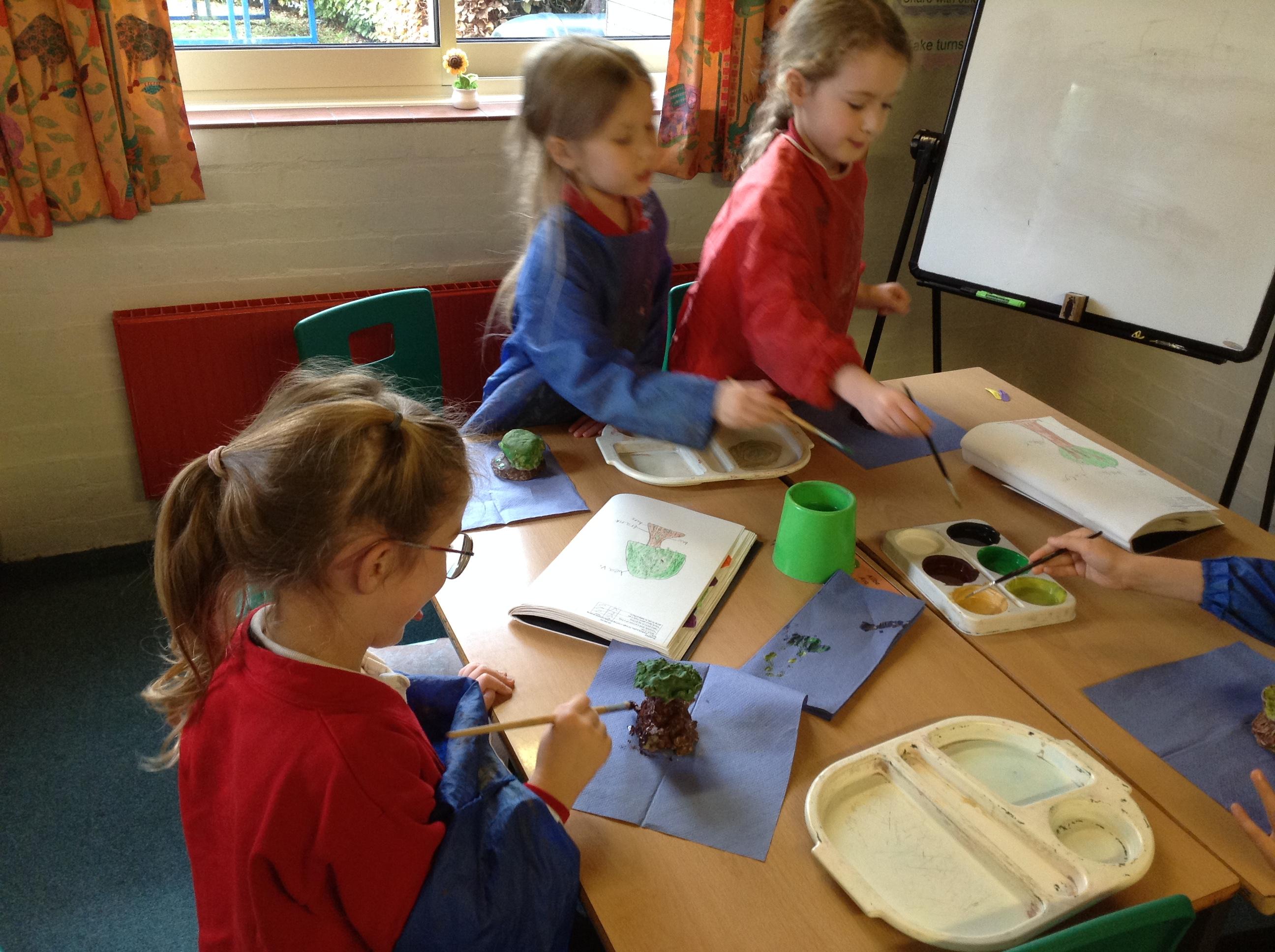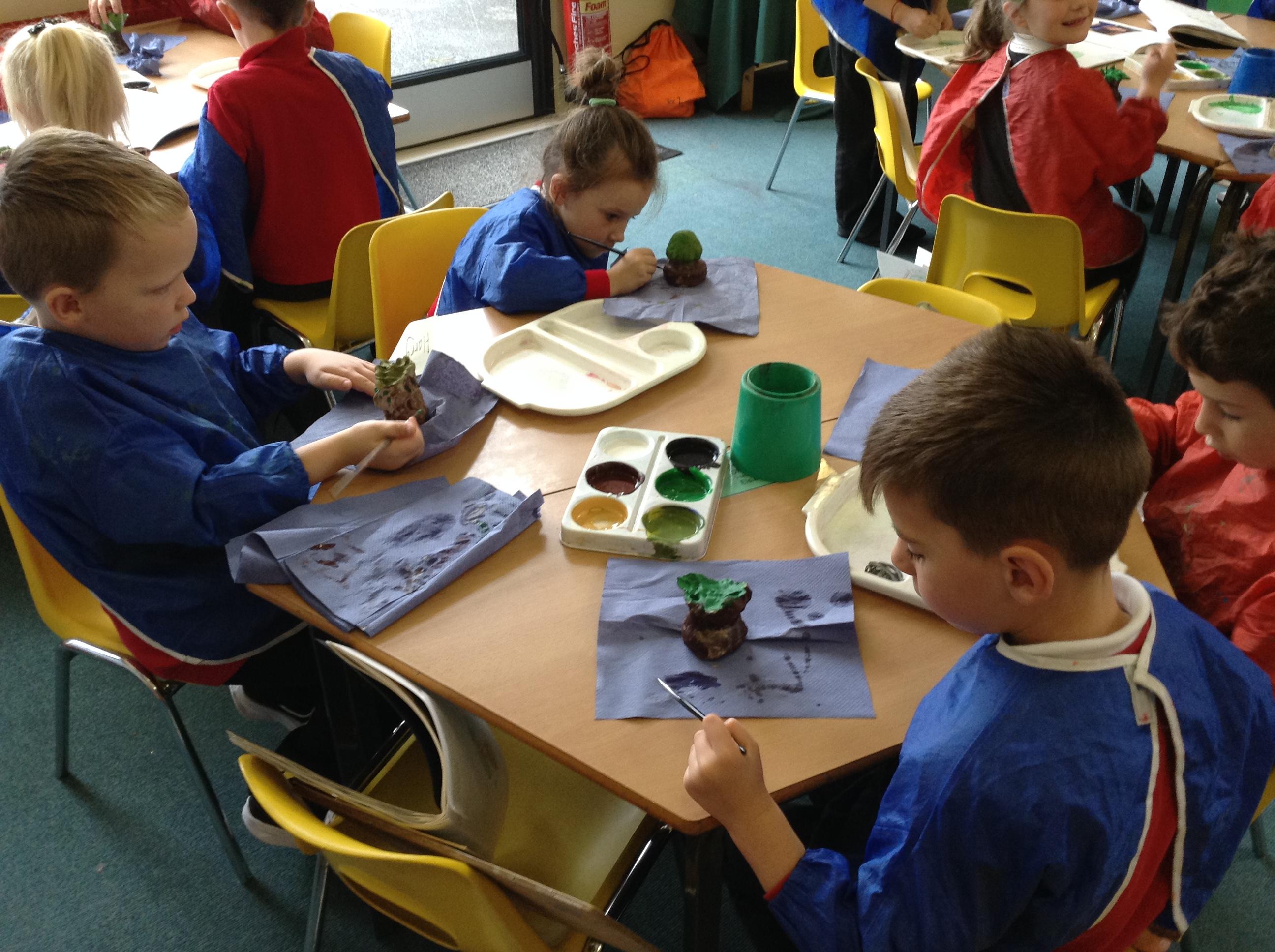 This week we finished our tree sculptures by adding detail with paint.