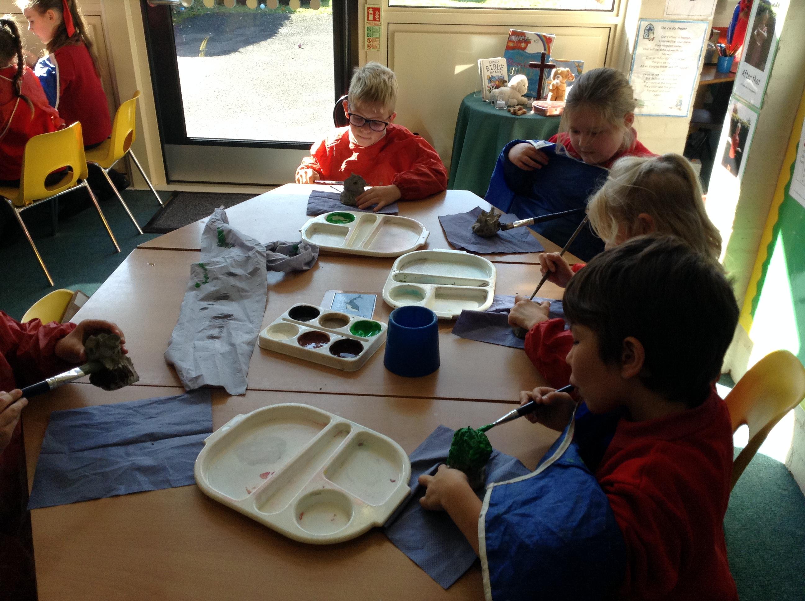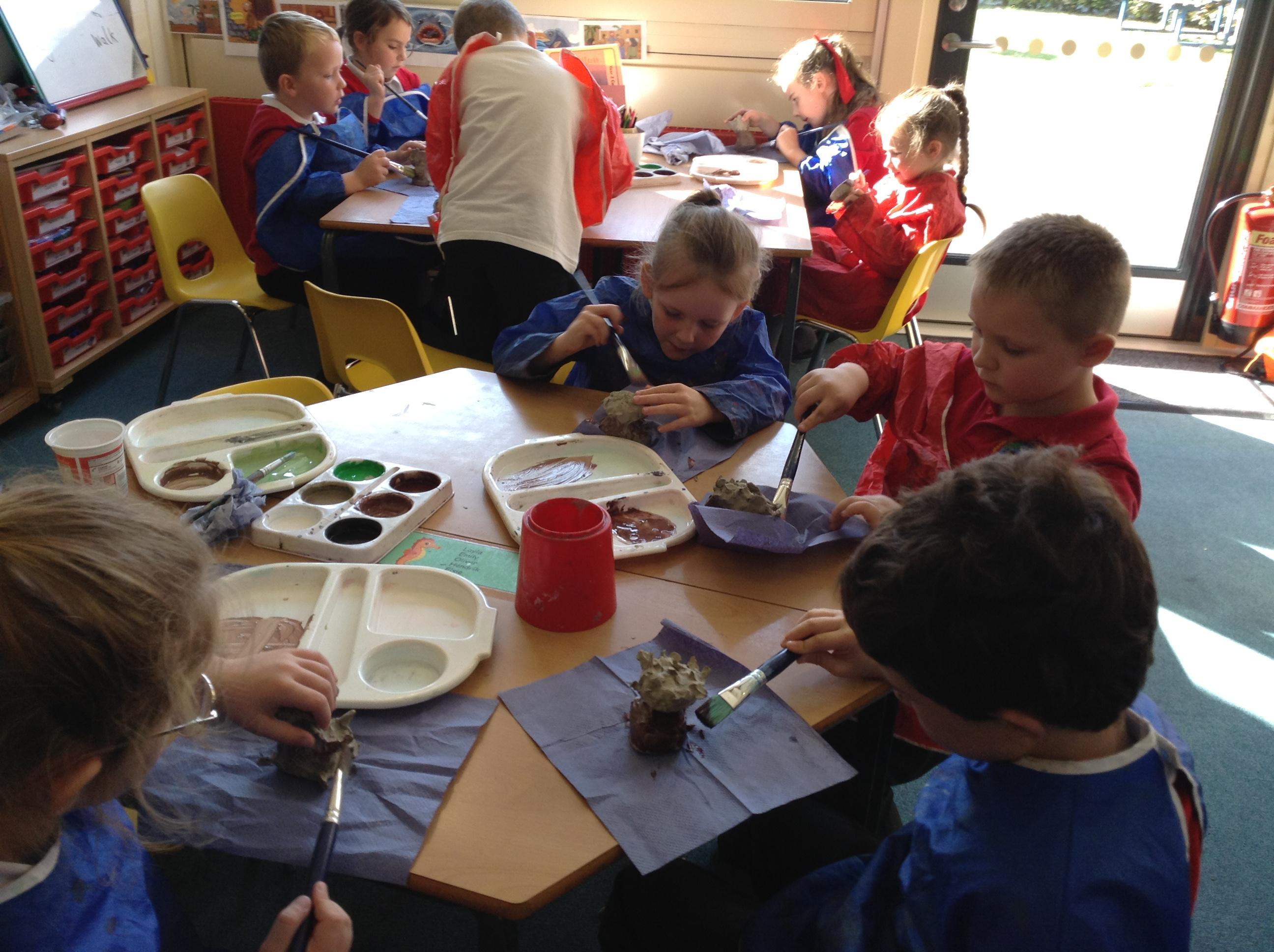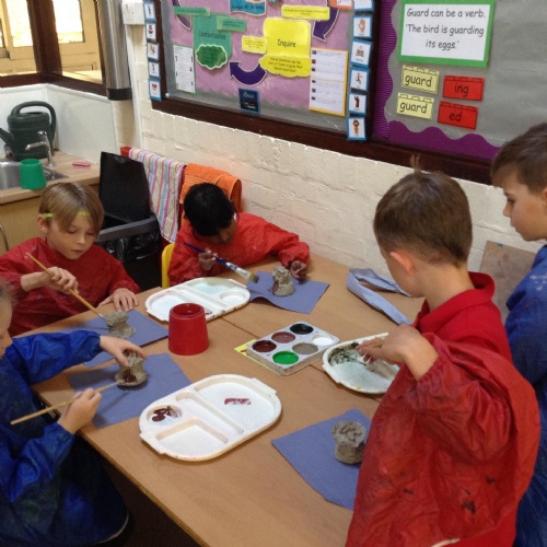 As part of our topic ‘Our Forest Home’, we went on a school trip to the New Forest. We had a lovely morning walking around the forest, looking at maps, doing bark rubbings and having a go at creating sticky strips with natural materials. We also created our winding mechanisms this week as part of our DT learning. In Art we painted our clay tree sculptures.